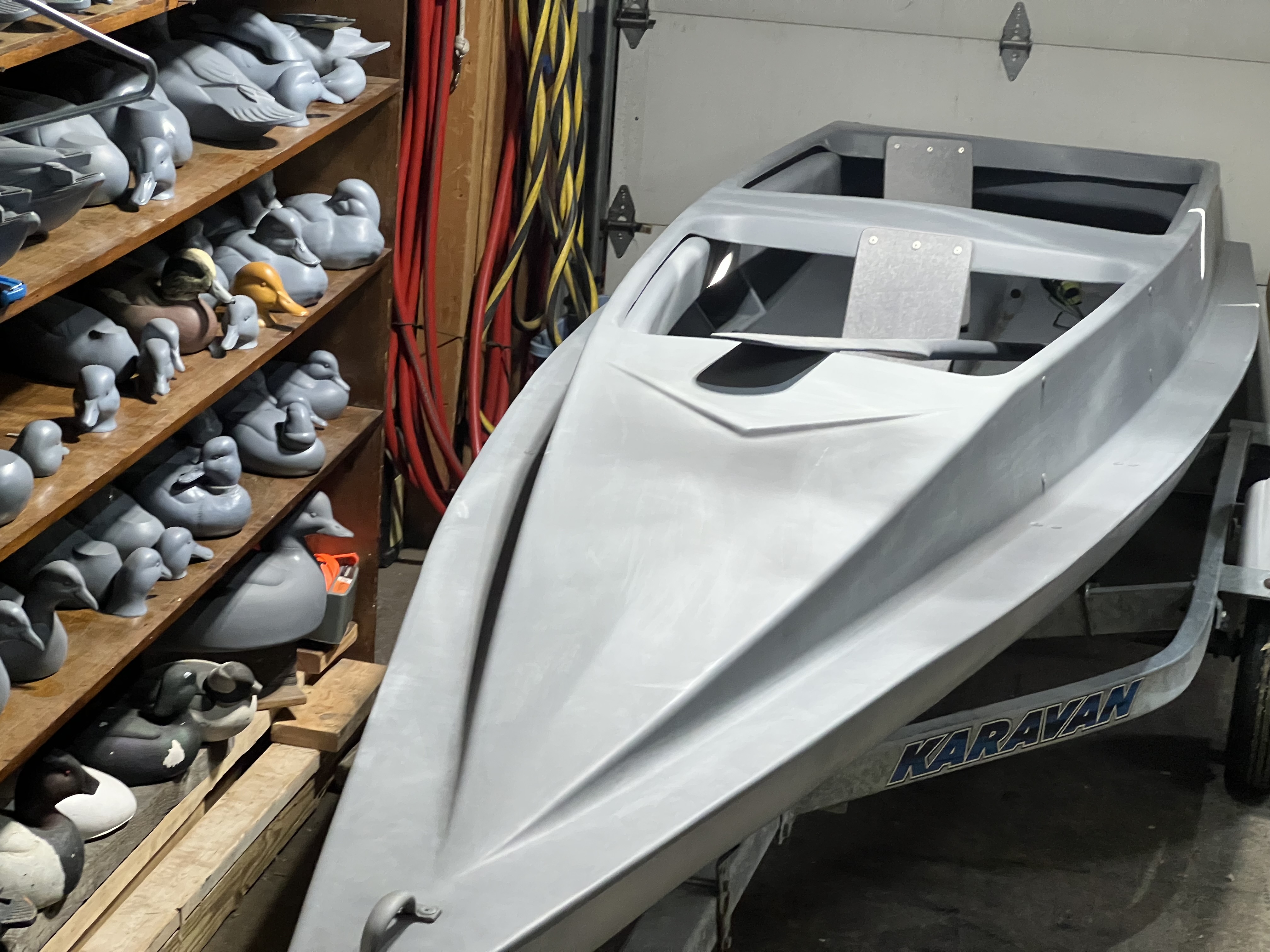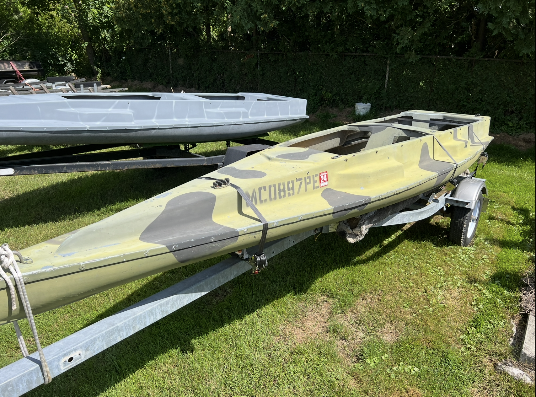 Just Above-Brant II (Camo-Green/Brown). This boat does not come with a trailer,