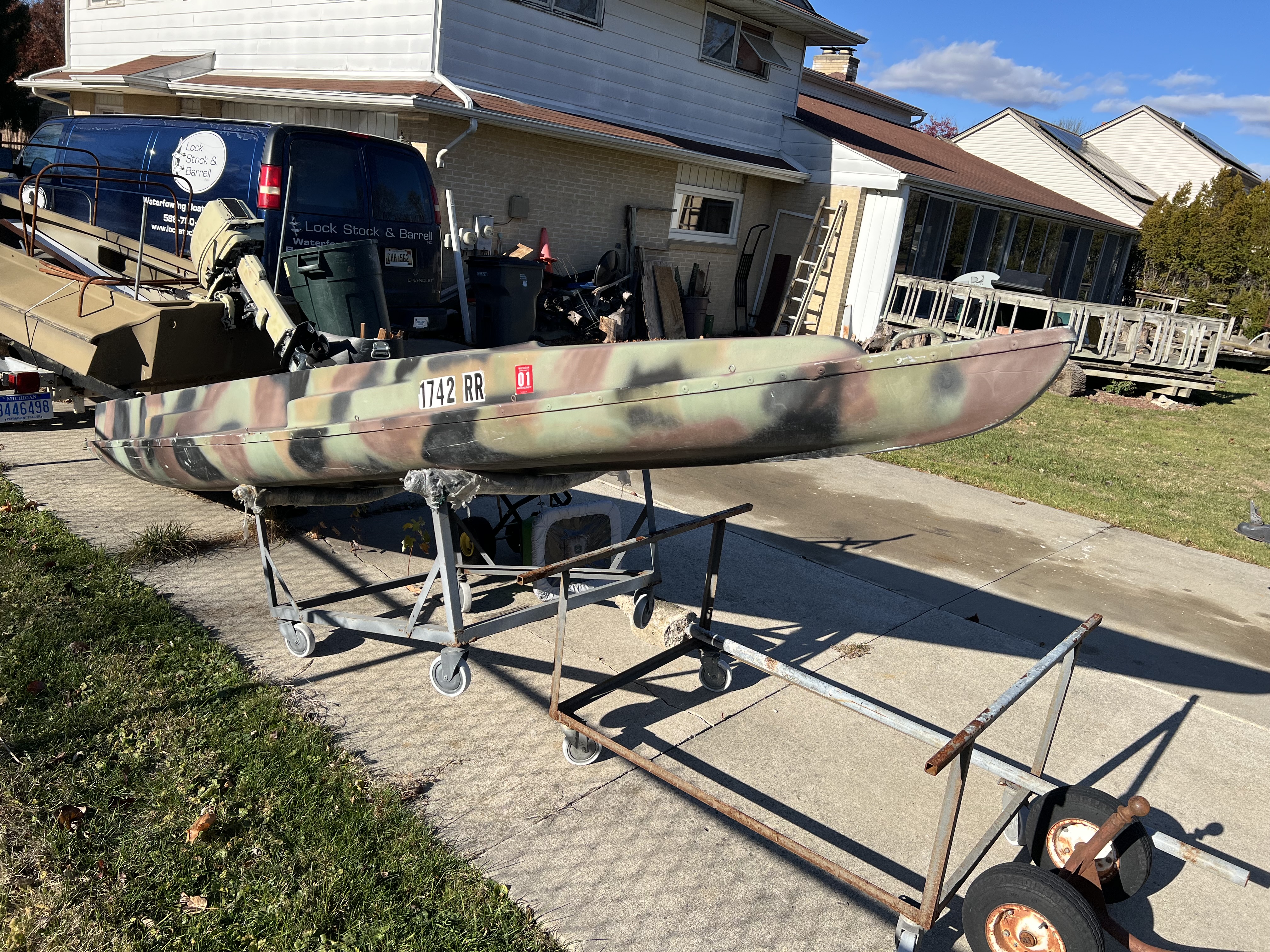 Just Above-Brant II (Camo-Green/Brown). This boat does not come with a trailer,